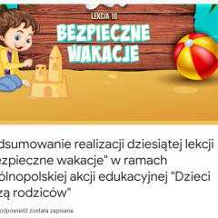 Ogólnopolska akcja edukacyjna “Dzieci uczą rodziców”, której adresatami są przedszkola i klasy 1-3 szkół podstawowych, to comiesięczne lekcje podejmujące tematykę bezpieczeństwa, ekologii, kultury i historii.